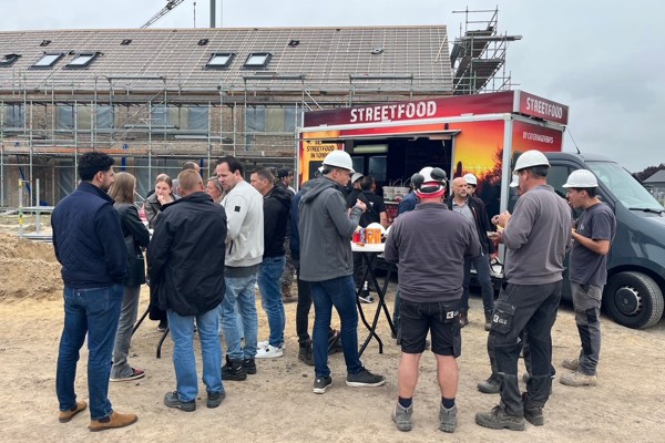 Op woensdag 4 juni vierden we een mijlpaal: het hoogste punt van de bouw van 13 sociale huurwoningen aan de Pinksterbloem en Teunisbloem in de nieuwe wijk Wulperveld in Stroe. Zoals altijd trakteerden we de bouwvakkers op friet, een snack en frisdrank. Dat werd erg gewaardeerd! In september leveren we het eerste blok van 7 woningen aan de Pinksterbloem op. Bijna alle woningen zijn al verhuurd.