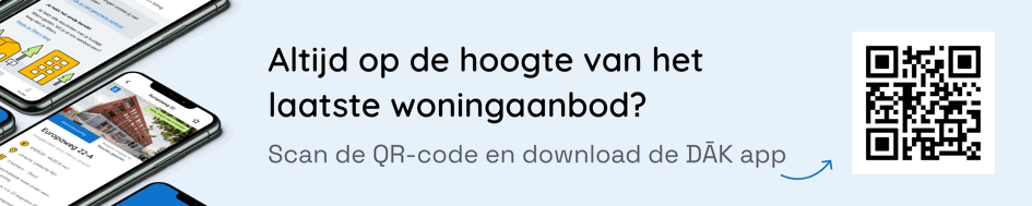 Wilt u snel en makkelijk op de hoogte blijven van het laatste woningaanbod? Download dan alvast de DAK app in de Google Play Store of App Store. U kunt instellen dat u een melding krijgt op uw telefoon als er een woning beschikbaar is die aansluit bij uw woonwensen. En u ziet, als dat nodig is, direct welke acties u moet doen.
